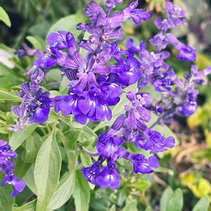 おはようございます😊 今日の天気は晴れ夕方から曇り☀️☁️ 最高気温27度 最低気温23度 💜ブルーサルビア💜 (サルビアファリナセア) 今日で200投稿目になりました💕😍 いつも見て頂き沢山のいいね👍 嬉しいコメント本当に有難うございます😂🥰🙇♀️ GS との出会いは… 2022.11.7に花の名前を教えて⁈に 初投稿💕🌸🌼🌺 我が家の小さな花壇で 育てている大好きなお花🌸💜🌼💙🌺🌿お出かけ先で出会ったお花🌻🧡🌷🩷🌺自然で一番美しい花姿のpicを投稿出来る幸せ〜💞 本当に感謝の気持ちでいっぱいです💕🩷🥰🙇♀️ これからものんびり投稿になりますが…見て下さるととても嬉しい〜💕です🥰今後ともどうぞ宜しくお願い致します🙇♀️🥰 今朝〜ブルーサルビア💜に次々と 紫色の綺麗な花を咲かせています💕💜💜💜😍 大好きな紫色のお花にうっとり〜💕💜🥰癒されますね💕💜💜💜🥰 今回…地元産ちゅらさん苗(10.5㎝苗)を購入しました🪴 タグには「地元沖縄で生産した苗は環境変化によるストレスがなく植えてからも元気に育ちます」と有りました💕🪴💜💜💜 その通り…綺麗な紫色のお花を咲かせ元気に育っています💕💜💜💜 サルビアの仲間で「ラベンダー」に似たお花を長期間咲かせ株がそんなに大きくならないのも良いですね🪴😊 💜ブルーサルビア 別 名 ケショウサルビア サルビア・ファリナセア 科属名 シソ科 アキギリ属 原産国 北アメリカ 花 色 青紫、白 花 期 5月〜11月 花言葉(全般) 尊敬、知恵、青花 永遠にあなたのもの