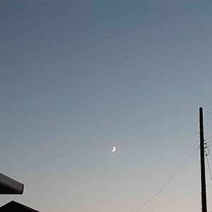 17時45分の月…🌒 デッキのステップに座って チロ助手とお月見をしました 🏷夜空を眺める会 にお願い致します