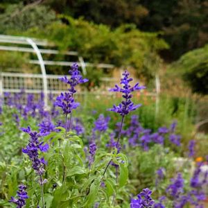 ブルーサルビア 種類はよく分かりませんが 紅葉🍁途中を背景に たくさん咲いていました❗👍☺️