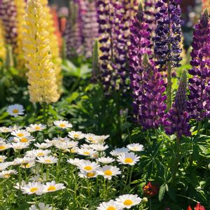 ルピナス花壇の別アングル📸 うちは狭くて日陰庭なので広い花壇に憧れます🥰