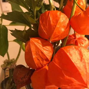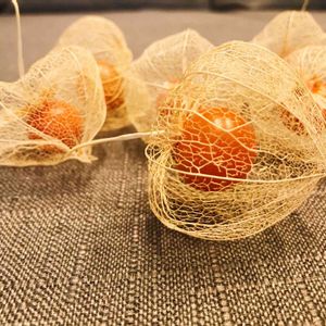 透かしほおづき 葉脈だけ残って ライトが当たると更に綺麗🎃 白くしたかったけど ハイターがなくて諦め... このままでも十分可愛い☺️