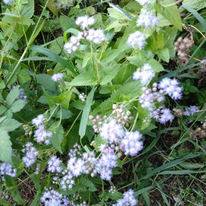 アゲラタムに似た、涼しそうな花ユーパトリウムです🩵 上は花友さんに分けてあげた花がたくさん咲いてました 下の二つは、我が家の花畑で咲いてるお花のアップです