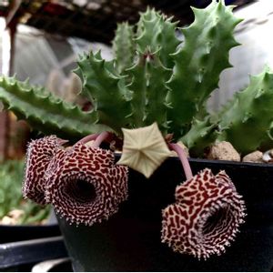 ・ 最近ゲットしたガガイモさん♡♡♡ フェルニア 「#スペワトルジム」 ちょっと検索してみましたが ヒットせず??? お花が大きく なんと言っても ヒョウ柄のコントラストが はっきりしているし綺麗〜〜♡♡♡ ハイ! 頑張って増やしたい! でも連日の猛暑に大丈夫〜〜 あぁ……心配は尽きません(⌒-⌒; ) ・ #ガガイモ #フェルニア #多肉販売 #多肉販売日の出町 #多肉販売エンジェルドロップ #雑貨屋 #雑貨屋エンジェルドロップ #エンジェルドロップ