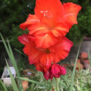 赤のグラジオラス 放ったらかしながら、最後の1本が庭の片隅で咲いておりました。