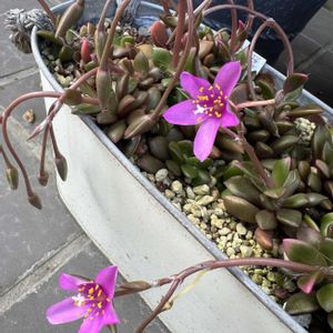今日のお花 エケベリア ❤︎ お友達からいただいた寄せ植え𖤣𖥧𖥣。𖤣𖥧𖥣。 可愛いです💓(୨୧•͈ᴗ•͈)◞ᵗʱᵃᵑᵏઽ*♡ 多肉ちゃんの品種は不明 ❤︎ 桜吹雪のお花🌸 次々沢山咲いていますが、見逃す事が多いです💦 ❤︎ ポーチュラカ ウェルデルマニー 4月頃からポツポツ咲いています💕 どピンクのハートの花びらがかわいい🩷
