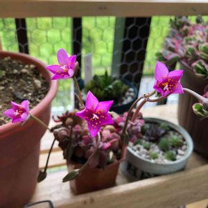 桜吹雪 今日は咲いてました!🌸🎶 これ以上開いてるのは見たことない… うちの子はこれが限界なのか。。? 一緒に植えているミセバヤはなかなか蕾が開かなくて。蕾のまま枯れてる所もあったので 肥料不足を疑ってちょっと追肥してみました。ピンクのお花が見たいな🎶
