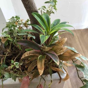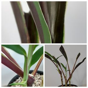 花屋の「通称赤ドラ」切り花。 ダークな赤に鮮やかな濃いグリーンの縁取が好みだったので付けてみた。1ヶ月半ぐらい経ったかな?根付いたけど新芽の葉色は逆パターン…。緑に赤の縁取りっぽい…。 室内だからかな?個体さなのかな?経過すると色変わるのかな?ドラセナなのか?コルジリネなのか? 1本を4分割しています。茎だけの所も芽吹きました。