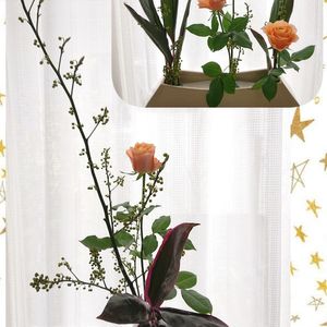 💐先日のおけいこ💐 ↗️おけいこの残りで生けた ならぶかたち風🤭 ↙️おけいこで生けた 投げ入れ☺️ 🏷️月曜日にはバラを 久しぶりに参加します🎶