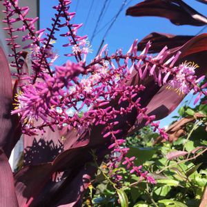 10月❹❷【千年木 赤】*宜野湾市我如古 はじめさん、南丸風さん、ありがとうございます…✍🏻 *観葉植物 *キジカクシ科ドラセナ属 *英名…dragon tree *和名…紅竹 *原産国…ギニア🇬🇳 アフリカ 千年木は、リュウゼツラン科ドラセナ科の植物の総称かな?と思われます。 紫色の葉に、ピンク色の花…エキゾチックです。 この植物も、生命力が強くインテリアグリーンとして、人気があります✨ 2019.10.23 am 10:10 ☀️