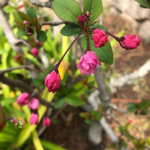 花海棠 蕾が大きくなってる〜💕 17〜8年前、亡母が元気な頃盆栽でもらい 盆栽は育てるの無理なので 我が家の庭先の1丁目1番地に😄 毎年アブラムシに悩まされるけど ちゃーんと春には花が咲く🥰 昨年は夏と秋にも数輪の花が咲き 父が亡くなった時期とも重なったので これは母が咲かせたな?と思うことでした😌 今日の日中の予想最高気温は24度とか… もう夏じゃーん☀️ 暑そうだけど💦 今日も1日笑顔でがんばろーっ✊⤴︎