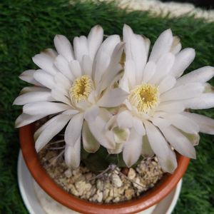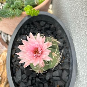6月最後になりました😃 🥵真夏のような暑さですねぇ⛱️☀️ 熱中症にならない様に、水分補給も 大切ですねぇ🥤 昼間に咲くのでしょうか? たまたま休みの今日のお昼に見れたのか? 長いトゲをよけながら、開花してくれました🎶 ギムノカリキウム 翠晃冠だと思いますが… 名無しでむかえて初開花です。 それも嬉しい✌️😄