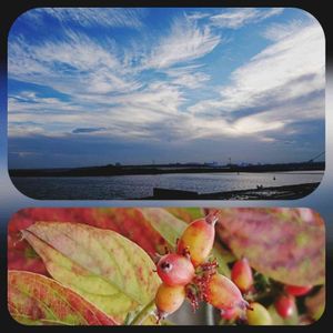こんばんは。(*^^*)🌃✨ いつの間にかセミの鳴き声が聞こえなくなり、代わって虫の素敵な声が聞こえるようになりましたね。😌💕 ハナミズキの可愛いらしい実に出会いました。😀💖 葉の色合いもとても素敵です。😀💕🌿🍁✨ ☆pic上:葛西臨海公園 ☆pic下:中葛西緑道 ☆2020年9月22日📱✨ 🏷️「おきょうさんの回文」に 🔰初投稿させて頂きます。 ワクワク・ドキドキ😞💦 ①シロクマノメノマクロシ 白熊の目の真黒し。👀✨ ②イマナミノリノミナマイ 今 波乗りの皆 舞い。🏄♂️💦 「波乗り🌊」の回文を思い付いたので、東京湾の風景と、 今日見てきて、明日他の果実と一緒に投稿予定だったハナミズキの写真を急遽投稿する事にしました。😅💦 🏷️「回文」の最後の日に気付き、慌ててしまいました。💦 いつも何にでも出遅れる私ですが、どうぞ宜しくお願い致します。😌💓💕