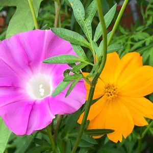 朝顔がさあ……。 何か言いたげなキバナコスモスさん👀 おきょうさん主催のGS回文に参加中です😊