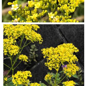 エバーフレッシュの花 黄色いふわふわの花。 オジギソウの仲間で、夜は葉が閉じるそうです。 可愛いいお花を見られて良かった🎵 偶然か二個ずつ寄り添って咲いてて、全部で六個。 GS回文も。 たまたま、またまた!
