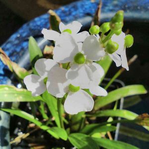 めだかが喜ぶ水草 「ナガバオモダカ」が今朝咲いてました☀ 回文も咲きました ピカッと☀ めだか酔いたいタコ めだかよいたいたこ 個体、貸与か?ダメ!