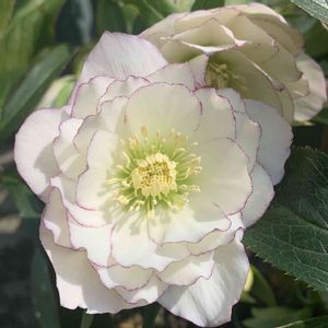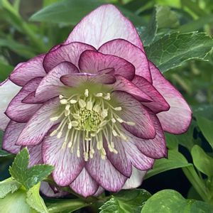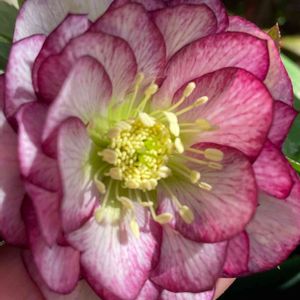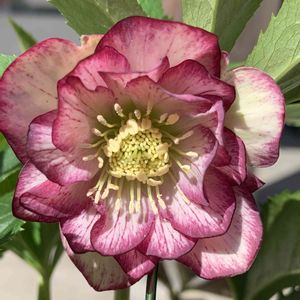 おはようございます😃☀️ 🍃🤍クリスマスローズ🤍🍃 我が家の色白美人さん( ˶'ᵕ'˶) ̖́-💕 八重咲きの花びらが フリフリで魅力的✨ 蕊もピンピンしています✨ パープルの縁取りも素敵ですね🥰