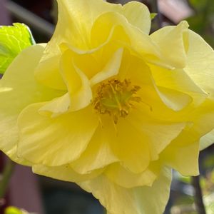 mo coさんクリローのベイン❓のダブルが咲きました💞 左手でお花を持ち右手でスマホ📱を持ってカメラのボタンをパシャリが上手くできない🤣 ちょいとピンぼけ😅
