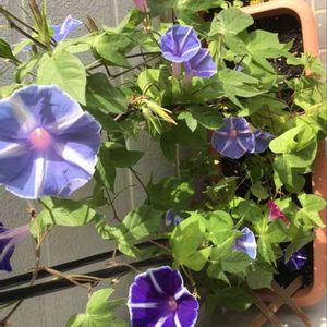 今朝の、朝顔。 咲いた朝顔を夕方こまめにつんでいったら、朝顔さん、焦ったか! 子孫を残すために? どんどん咲いてくれます(◍˃ ᵕ ˂◍) 頑張って〜🥰🥰🥰
