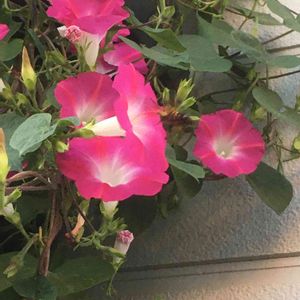 そして先程夕方の朝顔、、 色合いがピンク系に。 不思議だぁฅ•ω•ฅ😸