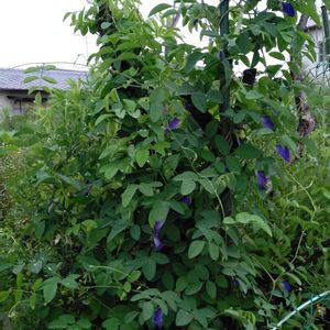 トネリコにからみついて ジャックと豆の木みたいな バタフライピー💙です 木の上の方の見えない所にも いっぱい咲いています💙 台風🌀が心配です😅