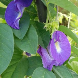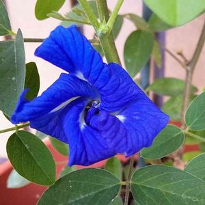青いマメ💙美しい八重咲きの花に魅了され育てて見ました一重咲きは中心が黄色で綺麗です✨蝶のように舞う花蝶豆💙当分楽しめそうです😊