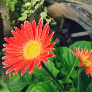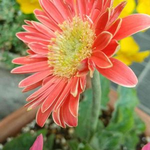 キュンキュン乙女倶楽部② ☘️ガーベラ・カートホイール☘️ 昨年10月の時はピンク色でしたが… 現在は外側の花びらが黄色です😅 (昨年10月17日にupしています🤭) 花言葉は「希望」「前進!」 元気が出るお花ですね👍🥰