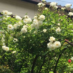 あちち…💦💦鉢植えの多い我が家は水やりが大変です〜💦 今朝から腰が痛くて…庭を少し掃き掃除したら、良くなってきました👍運動不足なんですね😆 今年買った若い苗のテッセンが咲いてバラ プロスペリティとの共演が実現しました💓(テッセンが見えにくい💦💦) ここにクレマチス4種類あって どれかと共演てきると思っていたので嬉しいです〜💚💚
