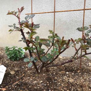オールドローズ プロスペリティーを迎えました。 5月には30センチぐらい伸びて花が咲きますが、それと同時に根元から新しいつるが出てきて、こちらがメインのつるバラに成長するそうです。10月にもう一度咲き、1月は葉を全てとりプロスペリティーに冬が来た事を教えてあげる つるは垂直に向けないと伸びていかない (購入時に教えてくれたこと)