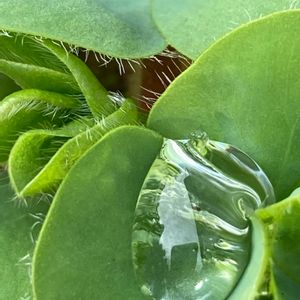 オキザリスの葉に残った昨夜の雨が美しい水晶のようです✨ スマホが映り込んでいるのを発見👀 かなり大きな水滴ですが 🏷水滴の水曜日 参加させて下さいね💧