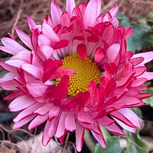火曜日に真っ赤な蕾だったちびっこデージーが開いたら益々可愛いくなりました❤️ 地上5センチの辺りで咲いたリバーシブル 雛菊のほか長命菊、延命菊の別名もあるようです