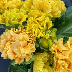 お花の形が分かりづらいものの、白菜みたいな葉っぱのキュートなフリンジ咲きです 一株に黄色とほんのりオレンジ色💛 🏷日曜ビタミンカラー♪ 🏷幸せの黄色いお花 参加させて下さいね♪