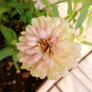 ジニア♡ アンティークカラーが素敵な ジニアさんです♪ お庭では 一重だったり 八重だったり 多弁きだったり と 色合いも咲き方も様々ですꕤ𓈒𓂂◌ 八重、多弁咲きの子を✂️して 生けてみました〜❁.*・゚ ①②クイーンレッドライム ③④クイーンレモンピーチ