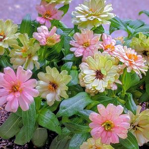 おはようございます😄🌤 1⃣2⃣ 何回も登場しています😅 ☆ジニア☆ 〈ジーデコ2色植え〉 花数も増え始め こんもり ドーム状に咲いてきました でも…!? ピンクは→淡い🌸に 🤍は→💚の色味が… お花って不思議ですね𓈒𓂂?? 全体的に 淡いバリエーションに なっています☺️💞 これも ෆ ෆ ෆ⸒⸒⸜( ˶'ᵕ'˶)⸝...εïз 𓂃٭❀✽*。💚🌸💚🌸 今日も 良い一日を お過ごしください🤗🌸˖*