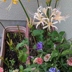 こんばんは😊🌃 iPhoneの容量オーバーで動きが鈍く今になり🙏 ① 💠白花ヒガンバナ 💠 ② 💠赤花ヒガンバナ 💠 別名;曼珠沙華 ヒガンバナ科 ヒガンバナ属 ③ 💠ケイトウ💠 鶏頭 別名;セロシア ヒユ科・ケイトウ属 花言葉『おしゃれ』『色あせぬ恋』 ④ 💠ジニア💠 百日草 ⑤ 💠ニラ 💠 ネギ科 ヒガンバナ属 見事に咲いていました。 5枚あります🌿 見てくださいね😊🎶💕︎