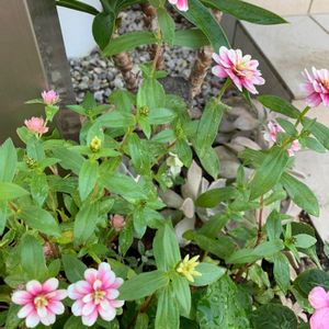 🌸ジニア🌸 ハンギング 八重咲きジニア 白 一重ジニア プロフュージョン ピンク まだ二種類が咲き揃ってます💕 やっと暑さから解放されるかなぁ🙂 日中の爽やかな日が待ち遠しいです‼︎