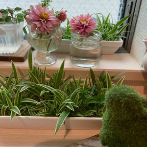 大雨の中少し窓辺の子を整理。 インパチエンスのピンクは外の鉢植えの親株に植えてみました。根も出たからもう大丈夫かな。 お母さんと仲良くね〜♪ 切り戻しのジニアちゃん、もう一本切ってきました🐰切り花としても長持ちしますね!