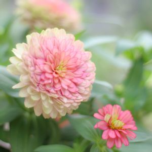 緑の蕾からピンクに! 咲くのが待ち遠しい✨ ジニアは淡い色合いに惹かれて😍 微妙な色がお気に入り💫