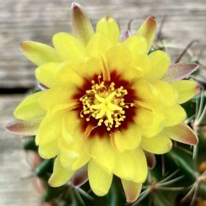 良い所に結実してサボテンオバケみたいになった👻 真上から見るとハリセンボン。 玉翁は自家受粉しないらしいが、今年は他の玉翁は花咲いてないけど、なんで?