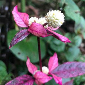 今日のお花 センニチコウ 白い千日紅はずっと咲き続けています♪♫♪ 赤葉せんにちこうも可愛い(^。^)
