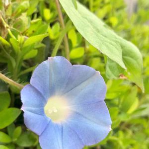8/13㈭② アメリカ朝顔 咲いてる場所で色合いが違う品種のようです。 青い朝顔…アメリカ朝顔ばかり見かけます😅 3cm、500円玉くらいの花で小さくて可愛らしいけどたくましいですね〜。 丸葉もありますが、私が見かけるのは3または5に裂けているクビレが強いヘデラセアという葉のアメリカ朝顔です。 1番上のはアスファルトの破れ目からツルをのばし、他の雑草に絡みついて咲いていました!!