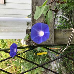 どこにでもあるアサガオです(*◕ᴗ◕*) 大きさは500円玉ぐらい。 ٩( ๑╹ ꇴ╹)۶ミニチュアサイズで私好み~♡