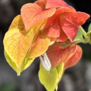 朱色の苞(ほう)が 重なったユニークな形 🦐海老の尾のように曲がってる (近所の玄関 鉢植え🪴) 小海老草(こえびそう) 別名 ベロペロネ キツネノマゴ科