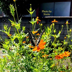 最近、キバナコスモスばかりでスミマセン😅 いつも通る道で咲いているキバナコスモスに、アゲハチョウが止まってました。 特にこの時期は、蝶やハチなどがたくさん集まって さながら楽園のようになります✨🌴