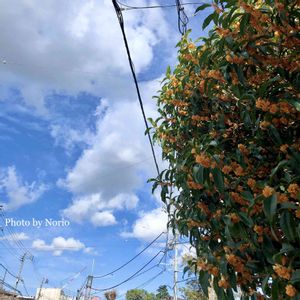 昨日、やっと晴れたので 青空をバックに、金木犀を撮りました😃