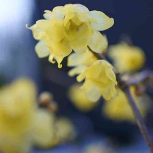 近所の蝋梅 昔初めて見たときは、花びらが固そうに見えました。 蝋というよりは、プラスチック