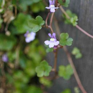 家の近くで、小さな花が 蔦のように門や壁に張り付いています。
