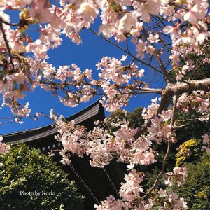 満開状態となった近所の神社の玉縄桜です🌸 真っ青な空に桜がよく映えてます✨👍