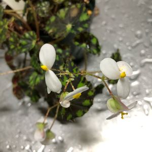 葉っぱも可愛いぃ〜💚 お花もちっちゃくて可愛いぃ〜💕 ミニのベゴニアさん♡お気に入り😊👍 昨日と一転😵暴風雨☔️🌀寒い〜😨 寒さに弱いこの子はお部屋でぬくぬく(ღ′◡︎‵)