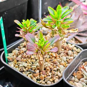 1️⃣ アデニウム 実生株のお手入れ🐵 後方2株と前方左⬅️株は 根っこがびっしりで 植え替えました ついでに ちびっこチャンを スパッと胴切りしました🔪✨ 左⬅️のちびっこチャンは いい感じの🐙足に なりそうよ😍👍 半分 起きてるけど 頭がすっきりしていて びっくりするね🙉ヒー 2️⃣ アデニウムアラビカムのビッカムくんとアデニウムオベスムのススムくんとの交配種 何とか 2株 育ちそう👀ジー 頑張ってーー🦾💪 大きくなりますように🙏