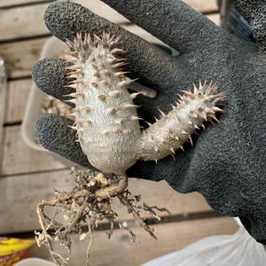 最後にもう1つのパキプス実生株植え替え 前は指4本ついてただけやったけど、伸びてる!? 今年もいっぱい成長してね🤗💕